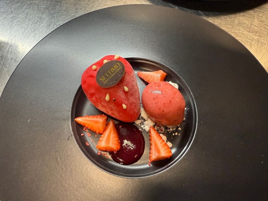 Giacomo Corcetti, giovane pastry chef del Ristorante Settimo Roman Cuisine & Terrace, sullo splendido rooftop del Sofitel Roma Villa Borghese, per la Gastronomy Sustainible Week 2025, propone un dolce che celebra un’eccellenza della pianura pontina: la fragola favetta di Terracina. Inconfondibile per il suo sapore dolcissimo, la sua forma rotondeggiante, il profumo e il colore intensi, questa varietà di fragola, introdotta negli anni ‘50, ha trovato in questo territorio della costiera laziale le condizioni non solo favorevoli ma “irripetibili” per la sua coltivazione. Giacomo Corcetti dedica a lei il dolce “Fragola 3 D” esaltandone l’unicità.