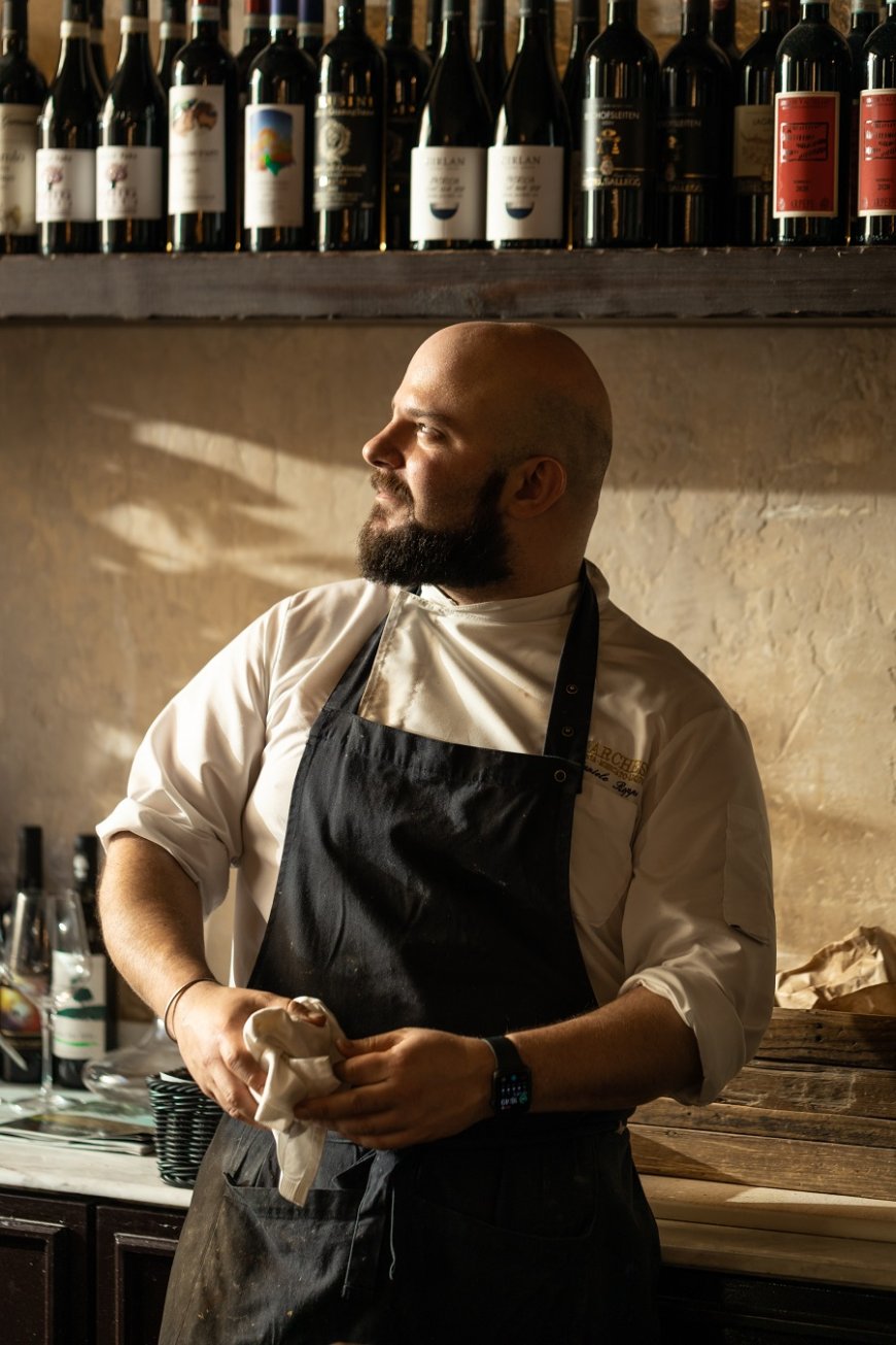 Andrea Pasqualucci. Filiera corta, certa ed etica, sempre al fianco di piccoli e selezionati contadini, artigiani e allevatori italiani, sono i cardini sui quali si muove la cucina dello chef Andrea Pasqualucci, una stella Michelin, alla guida della cucina del Moma dal 2017. Tra i piatti proposti nel menù dedicato alla Sustainible Gastronomy Week, Chef Pasqualucci propone il suo “Orto di stagione” che porta in tavola le primizie e la freschezza dei prodotti provenienti da piccoli orti biologici laziali.