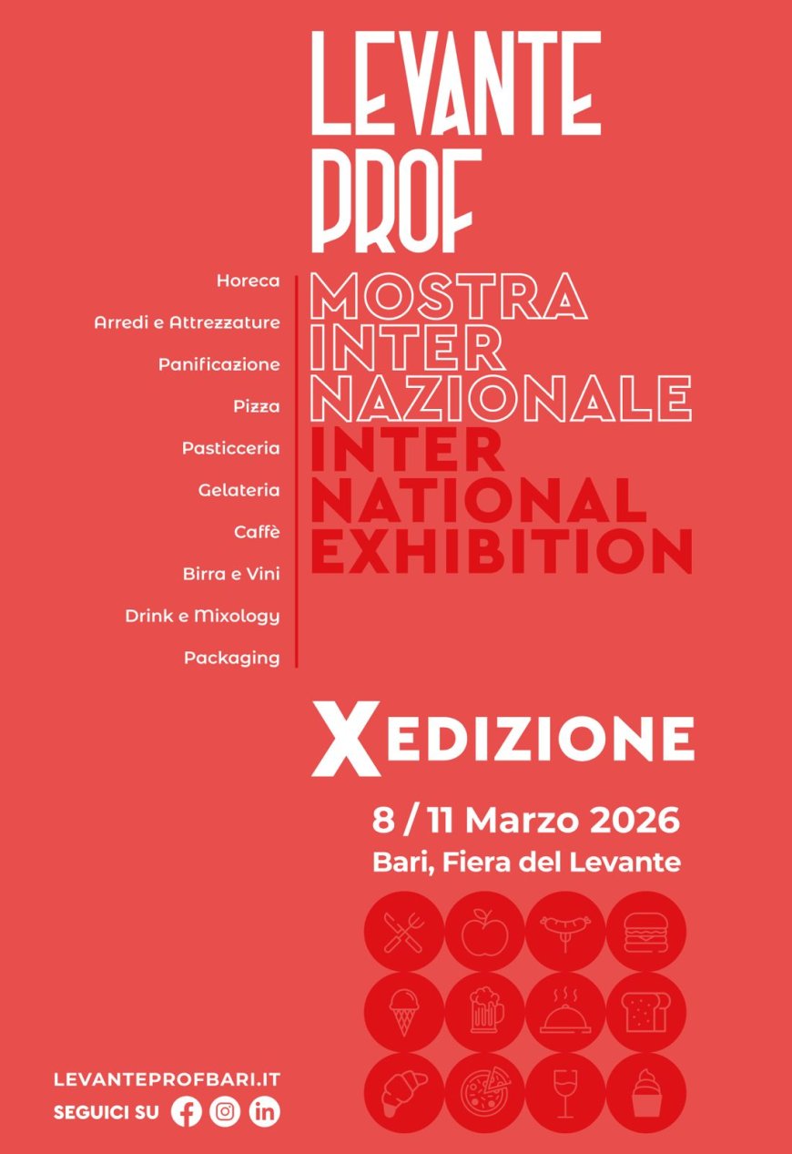 «La decima edizione di Levante PROF rappresenta un traguardo importante e una nuova sfida – dichiara l’organizzazione dell’evento –. Dopo l’edizione record del 2025, ci prepariamo a offrire un evento ancora più ricco e internazionale, per sostenere la crescita e l’innovazione del settore Horeca e valorizzare le eccellenze agroalimentari italiane».