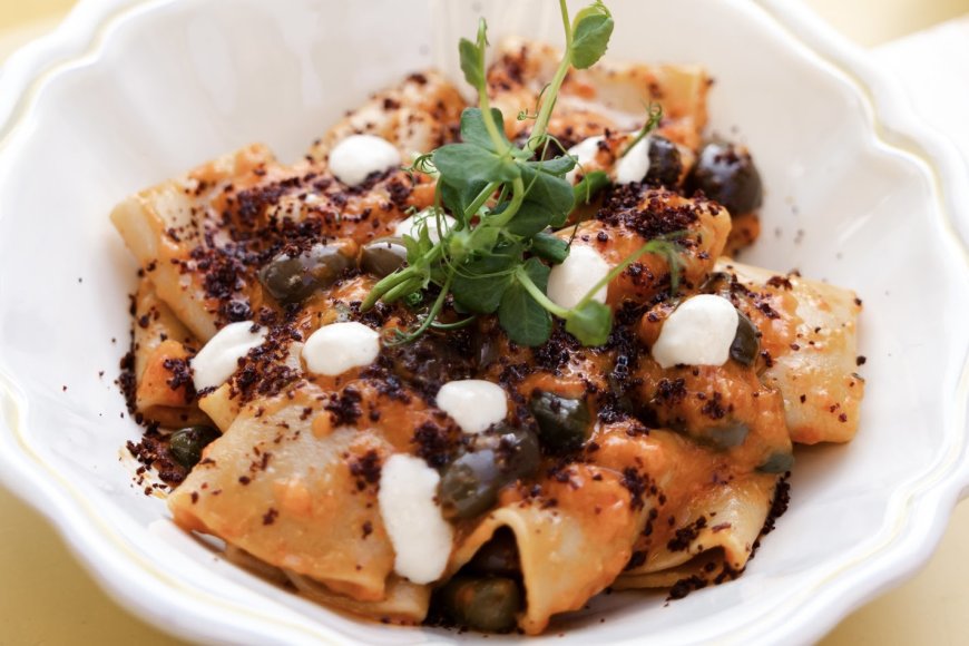 RICETTE - Andrea De Vita, chef e culinary director di Via Pasteria, il format di pasta fresca che in tre anni ha conquistato Milano con quattro locali e oltre 20.000 recensioni su Google con una media superiore a 4,7 su 5 presenta due nuovi primi per la bella stagione: pacchero con crema di peperoni, olive, capperi e salsa di mandorle e linguina allo zafferano con tartare di scampi e bottarga di muggine.