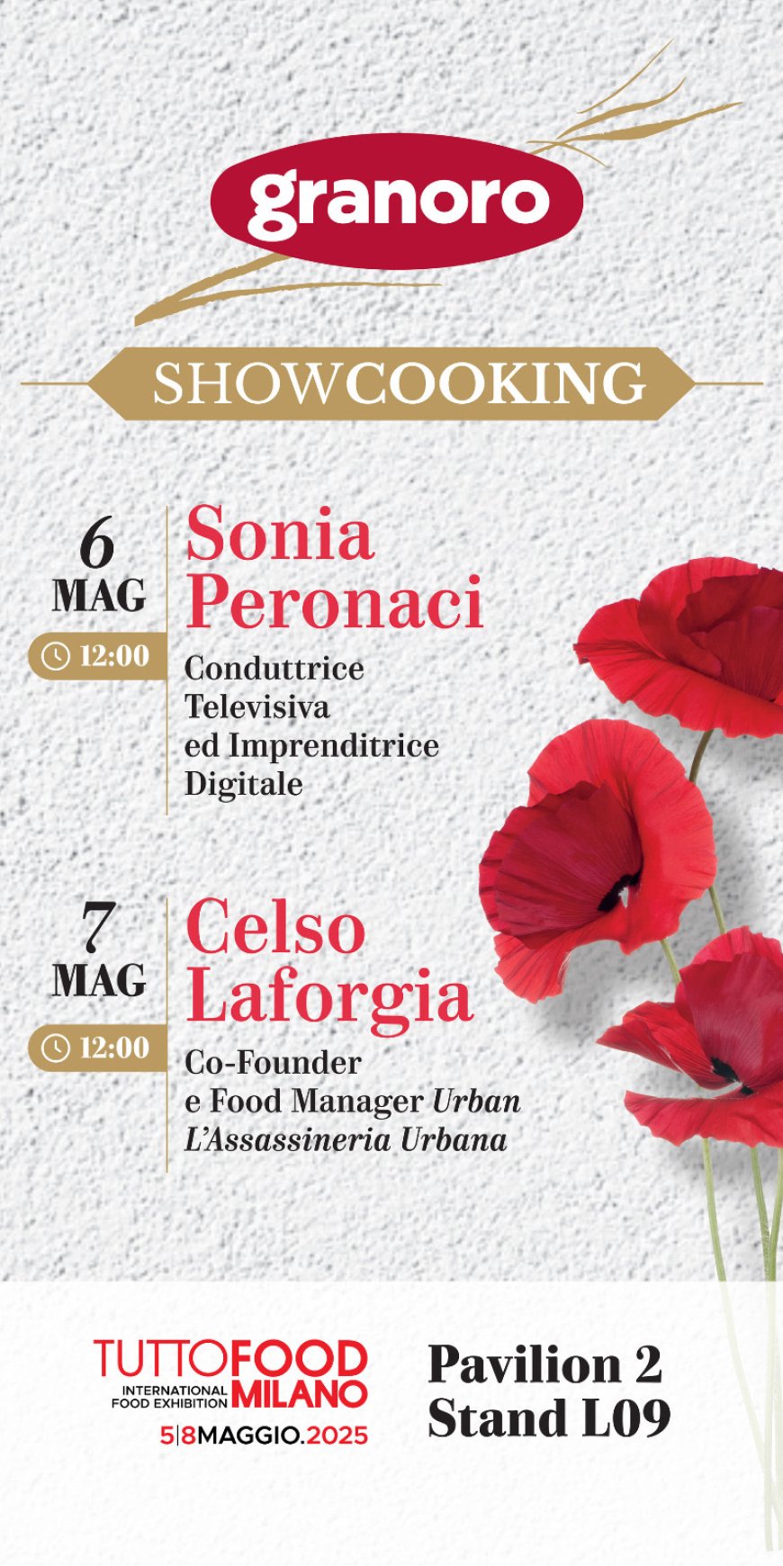 Lo stand Granoro (Pad 2 Stand L09) si colorerà dei colori del gusto gastronomico pugliese: il 6 maggio (ore 12.00) è in programma un originale show cooking con Sonia Peronaci, cuoca, conduttrice televisiva e imprenditrice digitale italiana che ha scelto di condividere con Granoro una personale esperienza.