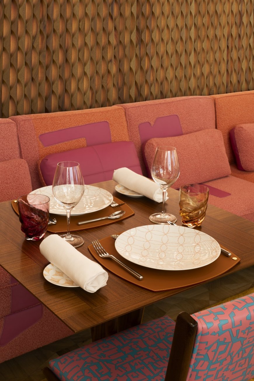 Con 44 coperti disposti su due livelli, il ristorante propone un concetto di Casual Fine Dining che invita alla condivisione. Il menu, esclusivamente italiano, include riferimenti creativi all'immaginario Louis Vuitton, come l'ossobuco accompagnato da risotto allo zafferano sagomato a forma del fiore del Monogram.