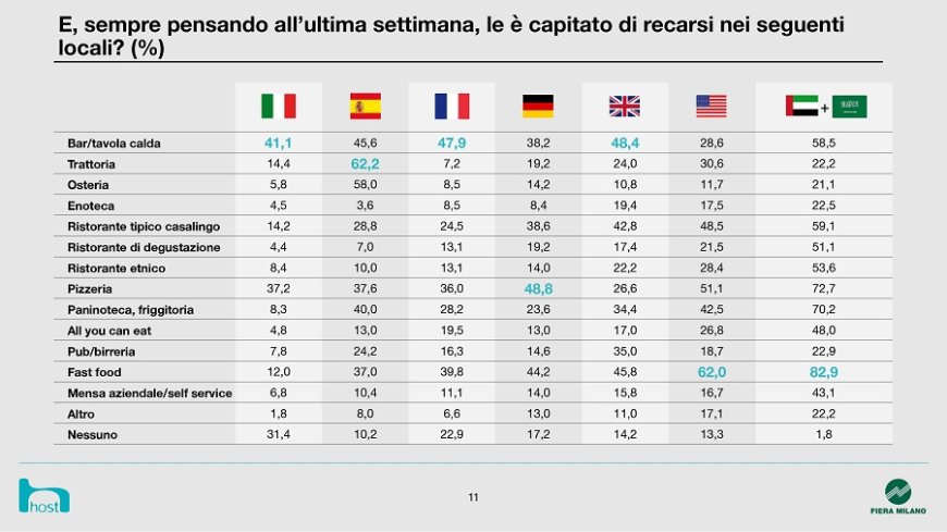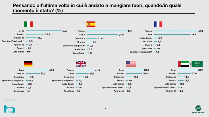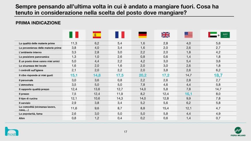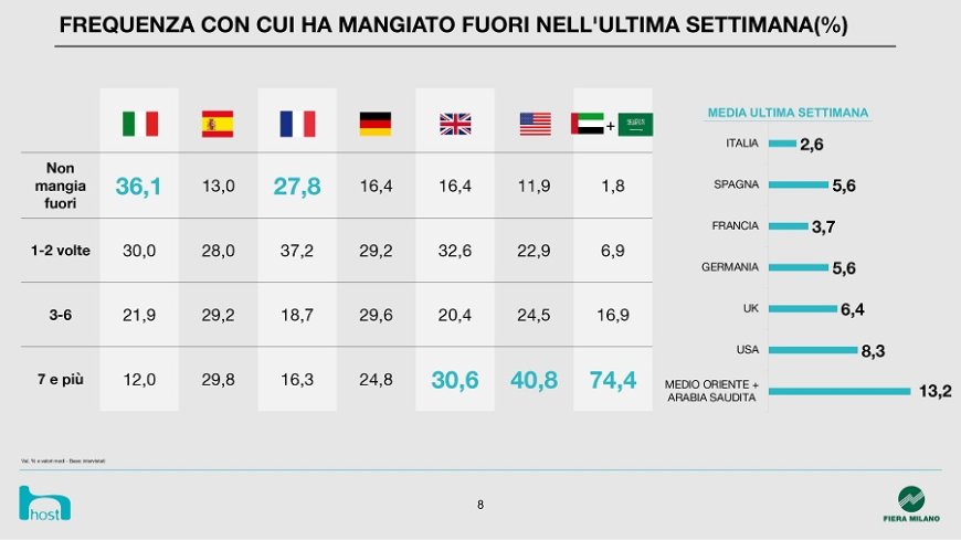 INDAGINI E RICERCHE - Un'indagine ad ampio respiro, che analizza i comportamenti e le abitudini di consumo di alcuni tra i più rappresentativi mercati internazionali rispondendo alla domanda: Cosa significa oggi mangiare fuori casa? È l'indagine voluta da Host Milano e realizzata da CSA Research, che ci aiuta a comprendere, attraverso 8.000 interviste CAWI in Italia, Spagna, Francia, Germania, Regno Unito, Stati Uniti e Paesi del Golfo, un quadro sfaccettato e in continua evoluzione, in cui differenze culturali e nuovi fattori di scelta ci mostrano tutte le potenzialità di un settore in cui l'unica certezza è il cambiamento.