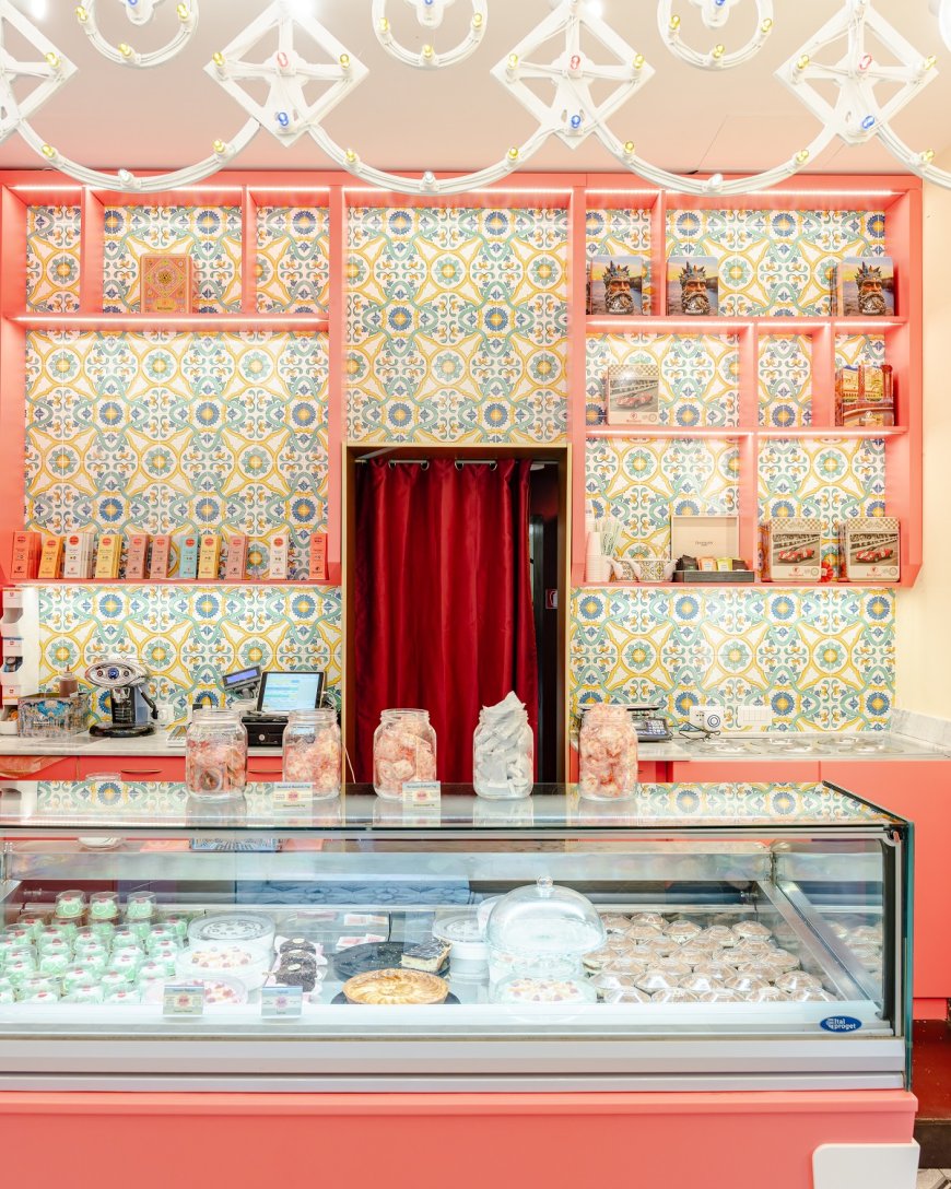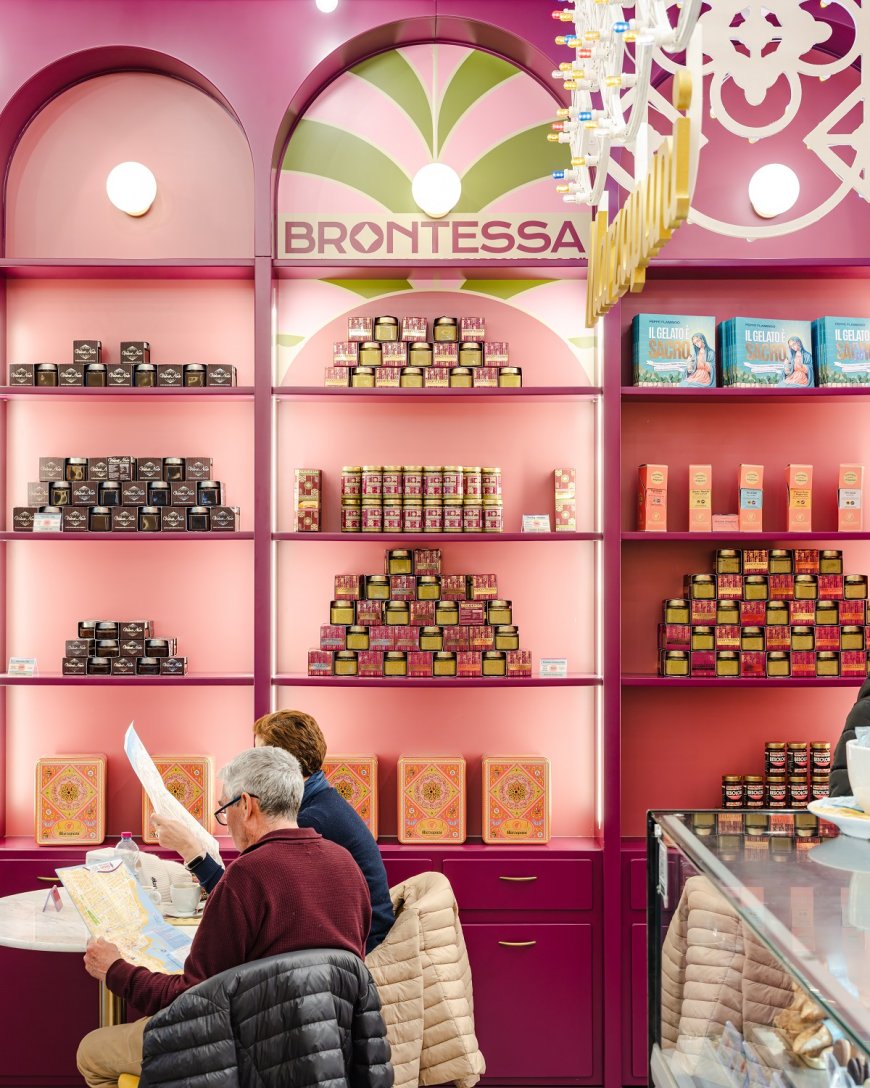 Il locale si trova in via Etnea 20/22, accanto alla storica gelateria Don Peppinu, alla quale è collegato tramite ambienti comunicanti. Lo spazio richiama una bottega contemporanea dal forte carattere siciliano: maioliche dipinte a mano, luminarie e colori accesi definiscono un’atmosfera accogliente ed elegante. Al centro domina un grande bancone scenografico dedicato al consumo veloce, mentre 15 coperti con sedute comode invitano alla colazione lenta, pensata per rispettare i tempi rilassati dell’isola.