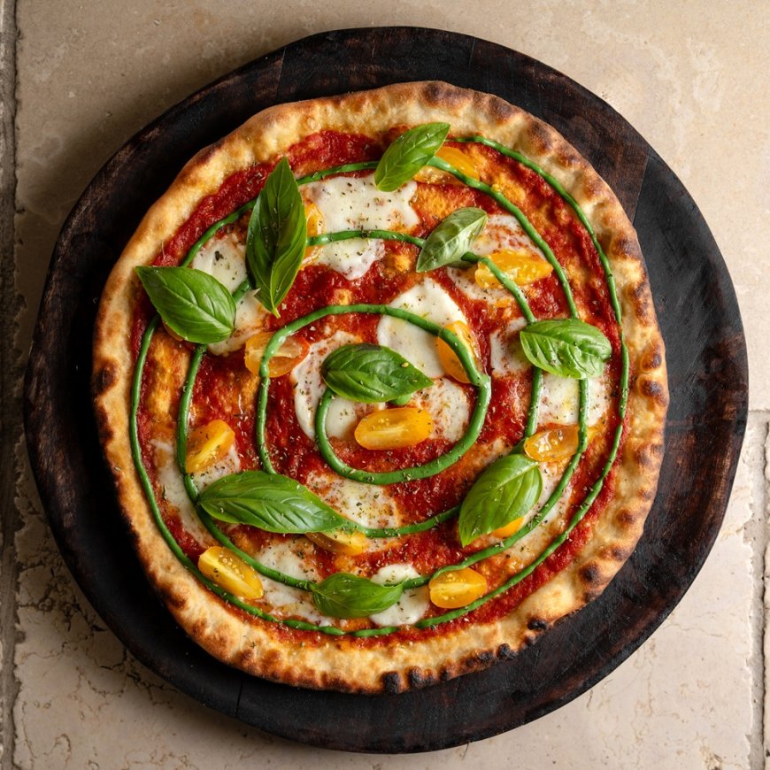 Il menù degustazione si apre con Pane e Pomodoro, una bruschetta "invisibile" con pomodoro giallo e origano. Si prosegue con la Margherita Carnivora, che lavora sulla doppia consistenza della pizzetta fritta ripassata al forno, e con la Carbonara di Asparagi su impasto apulian, con tartufo nero e guanciale croccante. In sequenza, la Ortolana in the Future, pizza vegetale con hummus di ceci e chimichurry pugliese, e Roma-Puglia, il maritozzo salato con brasciola pugliese. Tra le proposte a vocazione territoriale figura la Patanegra Pugliese, con emulsione di ricotta alle alici e prosciutto di suino nero di Martina Franca. Chiude il percorso una Provocazione di pizza alla Nutella: focaccia all'orzo e cacao farcita con nutella al carrubo di Castellana Grotte e caramello.