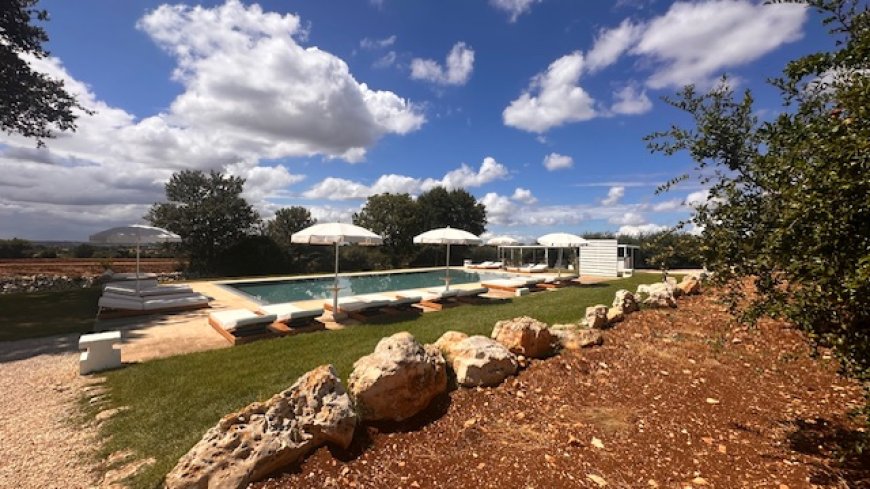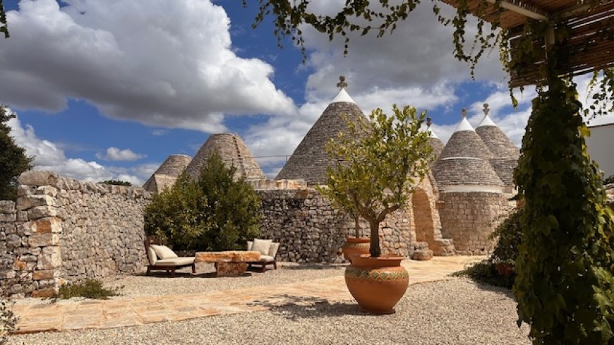 OSPITALITÀ E TURISMO - Nel cuore della Valle d’Itria, tra Locorotondo e Cisternino, c’è un borgo che si sviluppa su oltre cinque ettari di campagna pugliese, undici trulli che punteggiano il paesaggio alcuni dei quali trasformati in suite eleganti, dove la pietra viva convive con materiali naturali e comfort contemporaneo.