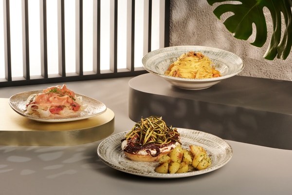 Per iniziare, è possibile scegliere tra una selezione di Small Plates - come antipasto o in abbinamento alla Mozzarella di Bufala -, che include proposte come il “Polpo Grigliato con Burratina, Gazpacho Italiano e Crumble di Pane ai Capperi” o i “Friggitelli e Melone Scottati con Soncino, Menta e sale di Trapani”.