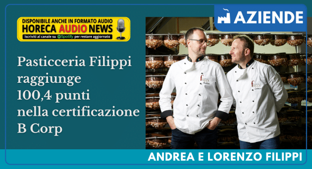 “Da sempre in azienda siamo attenti alle persone e all’ambiente che ci circonda – dichiara Andrea Filippi, co-titolare di Pasticceria Filippi assieme al fratello Lorenzo –. Per questo nel 2016 abbiamo deciso di intraprendere il percorso per diventare una B Corp lavorando costantemente per ridurre l’impatto ambientale e migliorare la governance e il welfare aziendale. Con la revisione dei parametri il nostro punteggio è sceso, ma ci siamo rimboccati le maniche per raggiungere i nuovi obiettivi, a partire dall’analisi delle procedure e delle attività. Nel farlo abbiamo coinvolto attivamente tutti i dipendenti per definire una strategia aziendale in linea con la nostra mission e con le esigenze dei lavoratori. In un anno siamo passati da un punteggio di 82,9 a 100,4: un risultato che ci riempie di soddisfazione, frutto di un continuo lavoro basato su valori solidi”.