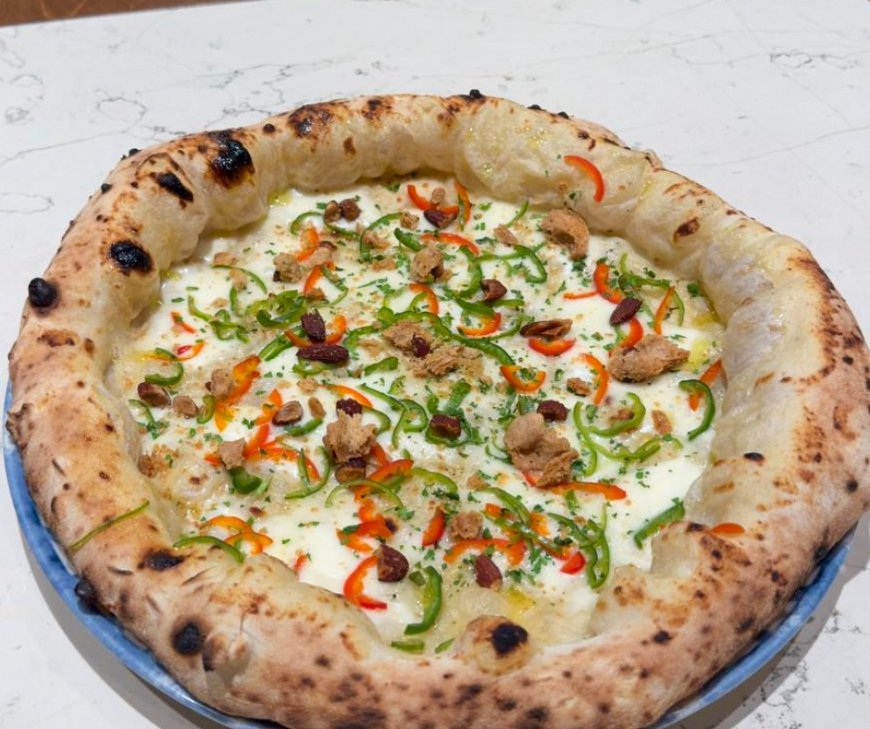Il Calzone di Scarole porta in tavola la tradizione napoletana con scarola, olive, capperi, uva passa, pinoli e acciughe. La Capoccia celebra Roma e i premi vinti al Pizza Awards Italia 2025: porchetta di Ariccia, provola, sfoglia di patate sottilissima al burro affumicato campano, senape e lime. Baciami Ancora è la versione 3.0 di un classico rivisitato: crema all'aglio alleggerita e sbianchita al latte, peperoncino friggitello, tarallo sbriciolato, zest di lime, prezzemolo e polvere di peperoncino.