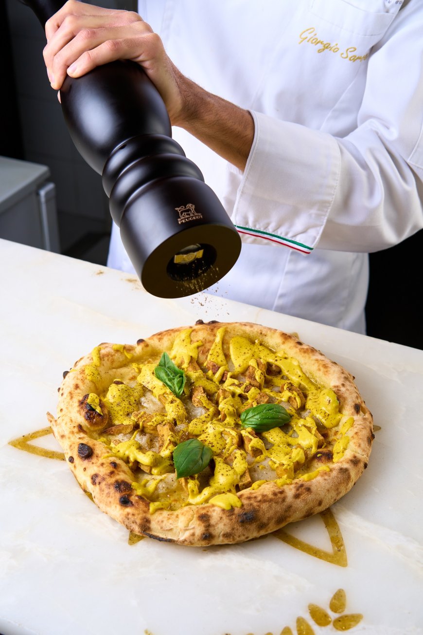 Le pizze contemporanee raccontano un dialogo tra Sicilia e mondo: la Cipolla in cinque consistenze è un omaggio alla creatività, mentre la Pantelleria porta in tavola il sapore del tonno, dei capperi e delle olive dell'isola. C'è la Sicilia quattro formaggi DOP, con un trionfo di eccellenze locali come il Piacentino ennese e la Vastedda del Belice, e la Carbonara rivisitata, che trasforma un piatto romano in pizza con guanciale ragusano e tuorlo fritto.