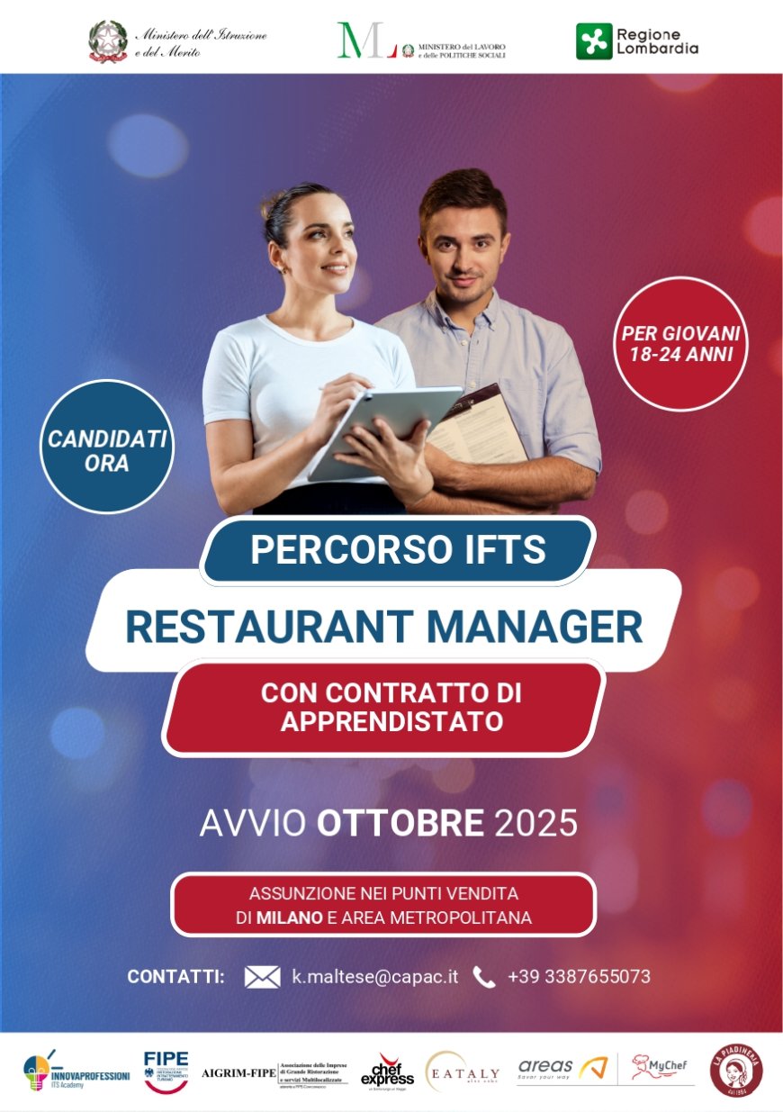 ISTRUZIONE E FORMAZIONE - Reclutamento, formazione e riduzione del mismatch tra domanda e offerta rappresentano alcune delle sfide più pressanti che il settore della ristorazione deve affrontare oggi. Per rispondere concretamente a queste problematiche, AIGRIM-FIPE, Associazione delle Imprese di Grande Ristorazione e Servizi Multilocalizzate, ha sviluppato un progetto pilota innovativo dedicato alle nuove generazioni: il percorso IFTS Restaurant Manager.