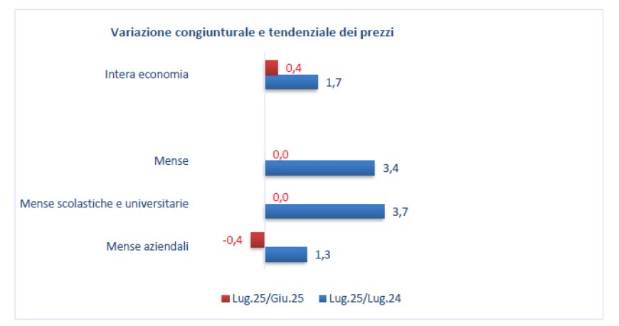 I prezzi delle mense registrano una variazione del 3,4 % nel confronto con luglio 2024.