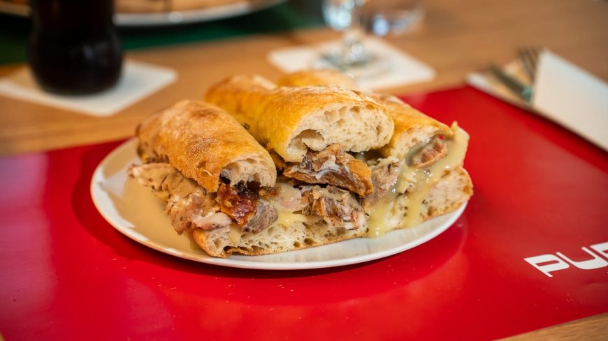 Falia con porchetta e crema di patate