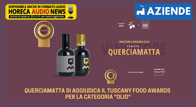 L’unica azienda ad aggiudicarsi il riconoscimento nella categoria “Olio” Tuscany Food Awards 2022 è Querciamatta, situata a Monsummano Terme in provincia di Pistoia, con le sue due etichette IGP Toscano Biologico e 100% Italiano Biologico, assaggiate e valutate dalla giuria di esperti.