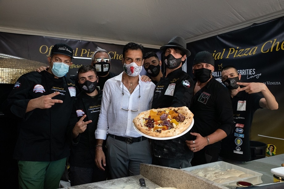 L’area food dell’Hollywood Celebrities Lounge della Mostra è stata curata durante i giorni del Festival dall’Accademia Nazionale Pizza DOC e da “Sapori di Napoli” che insieme hano deciso di omaggiare la kermesse con una pizza napoletana, Venezia 77, realizzata con materie prime incredibili e soprattutto tipiche della città della laguna, come ad esempio il radicchio, la polenta ed il baccalà alla veneziana.