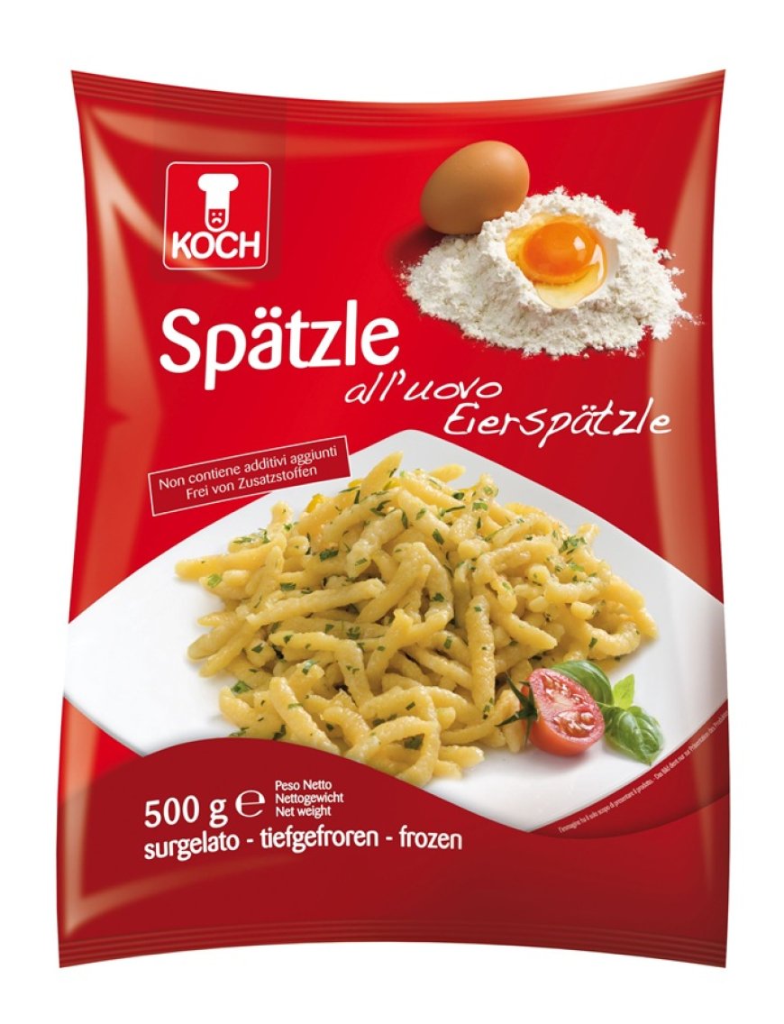 GELATI E SURGELATI - Koch, storico marchio altoatesino simbolo di qualità e tradizione nel mondo dei surgelati, propone gli Spätzle all'Uovo: una specialità ispirata all'autentica ricetta sudtirolese, pensata per chi vuole portare in tavola un piatto gustoso e genuino senza rinunciare alla praticità.