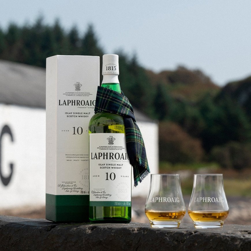 Di segno opposto, ma altrettanto identitario, è Laphroaig, prodotto sull'isola di Islay sin dal 1815 e considerato uno dei single malt più riconoscibili al mondo. Il suo profilo — intensamente affumicato, con sentori iodati e richiami salmastri — è il risultato di un processo produttivo che conserva tecniche tradizionali: dall'utilizzo dell'acqua del torrente Kilbride alla germinazione dell'orzo sui pavimenti di maltaggio, fino all'essiccazione con torba locale. È il fumo della torba, ricco di composti fenolici, a imprimere al distillato la sua firma aromatica distintiva.