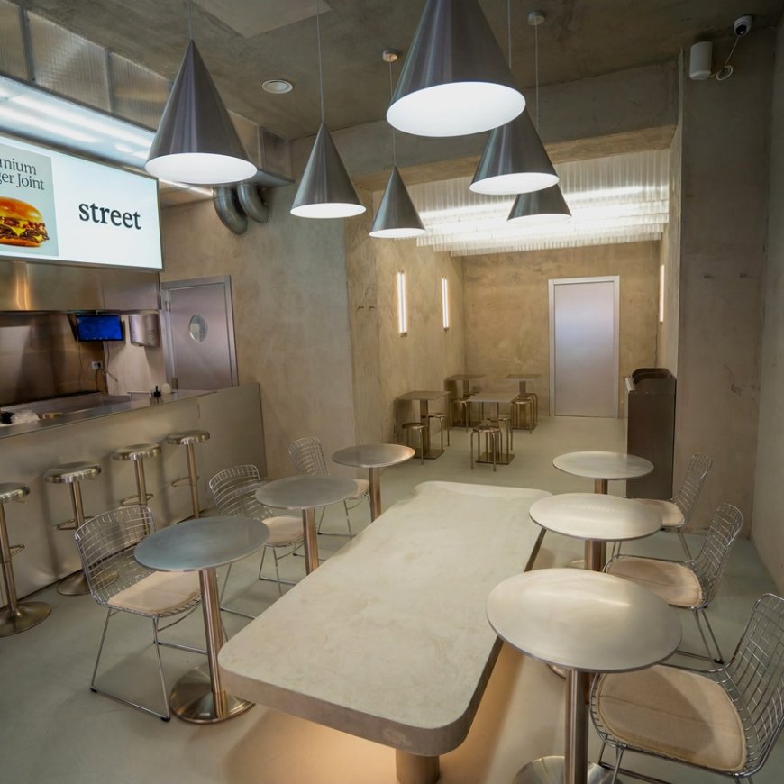 Fedele all'identità che lo ha reso uno dei player più riconoscibili nel panorama degli smash burger europei, Street punta su cucina a vista, design industriale e una proposta centrata sul prodotto. Il cuore del menù è lo smash burger, preparato con un blend esclusivo di carne e lavorato secondo la tecnica "lazy edge smash", che esalta il contrasto tra croccantezza esterna e succosità interna. Il burger è disponibile in tre varianti: Street, Classic e Bacon Burger. A completare l'offerta, tre tipologie di patatine: classiche, dolci e le iconiche con salsa al tartufo e grattugiata di parmigiano.