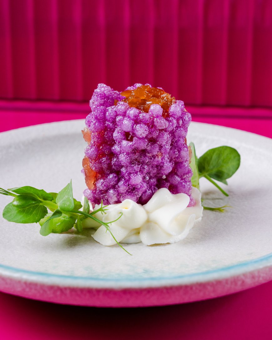 Il menu si completa con tataki, sashimi e tartare, oltre a specialità innovative come i Tacos Tuna, preparati con tacos artigianali, tonno, Philadelphia, guacamole e teriyaki, e la purea di patate con scampo.