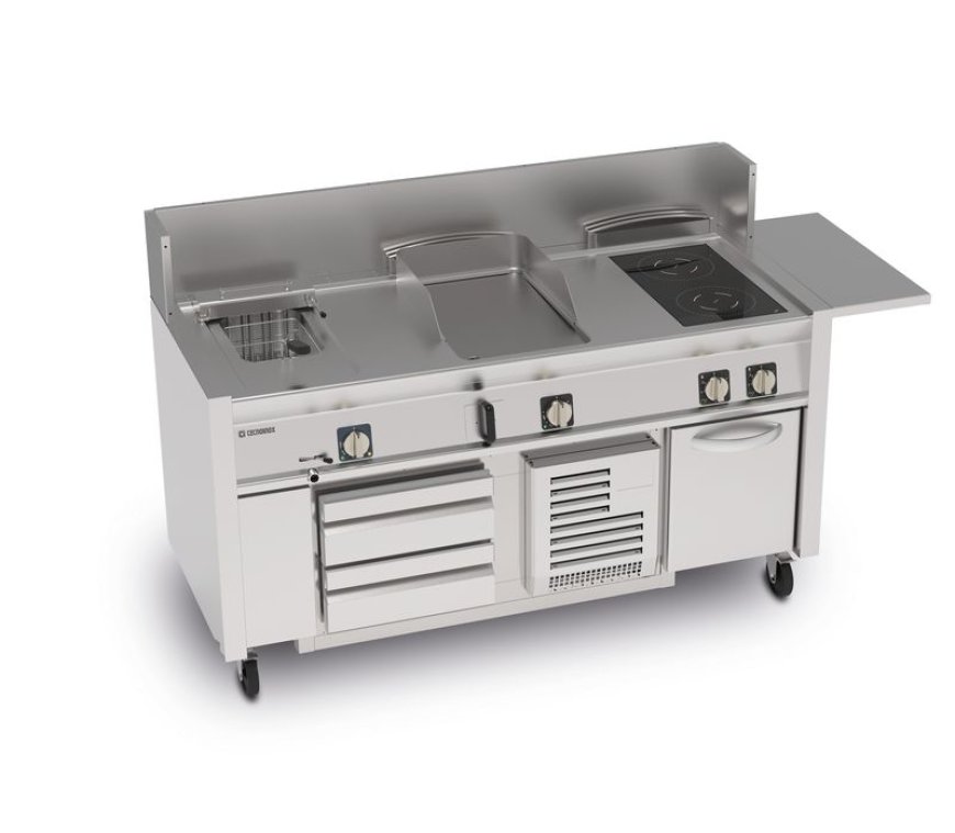 Dotata di ruote, ITINERIS si sposta con facilità adattandosi senza problemi a catering, banqueting, eventi e fiere, senza complicazioni logistiche e senza compromessi in termini di prestazioni. La natura componibile permette, grazie all'integrazione con i moduli della linea T74, di selezionare e combinare fino a quattro funzioni specifiche, con la possibilità aggiuntiva di inserire una base refrigerata nel modulo da 160 cm, ideale per chi lavora all'aperto in giornate calde.