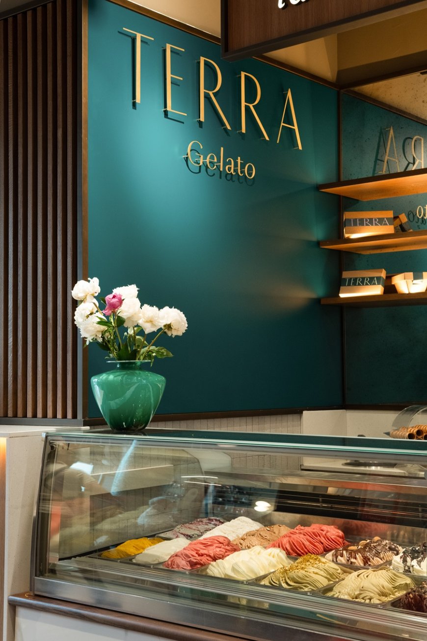 Terra nasce a Milano nel 2018 da un progetto di Gianfranco Sampò. il nome stesso racconta il legame profondo con la natura e l’impegno per un futuro più sostenibile, per l’ambiente e per le persone. Fin dalla sua nascita, Terra Gelato ha adottato pratiche responsabili in laboratorio e nei negozi, come l’uso di tecnologie per il riciclo dell’acqua, l’impiego di energie rinnovabili e un packaging eco-friendly. Le materie prime provengono da produttori che condividono valori etici e attenzione al benessere dei lavoratori. Le gelaterie Terra, a Milano e Roma, sono oasi urbane pensate per offrire un’esperienza multisensoriale: ambienti accoglienti e rilassanti, dominati dal verde-blu caratteristico, dove il gelato è protagonista. Nel 2024 lancia l’app Terra, con cui l’esperienza si estende anche a casa grazie a un servizio delivery efficiente, promozioni dedicate e vaschette 100% compostabili. A completare il rituale, il cucchiaio di design BIS, in ceramica smaltata, all’interno del concept “Rito del Gelato”.