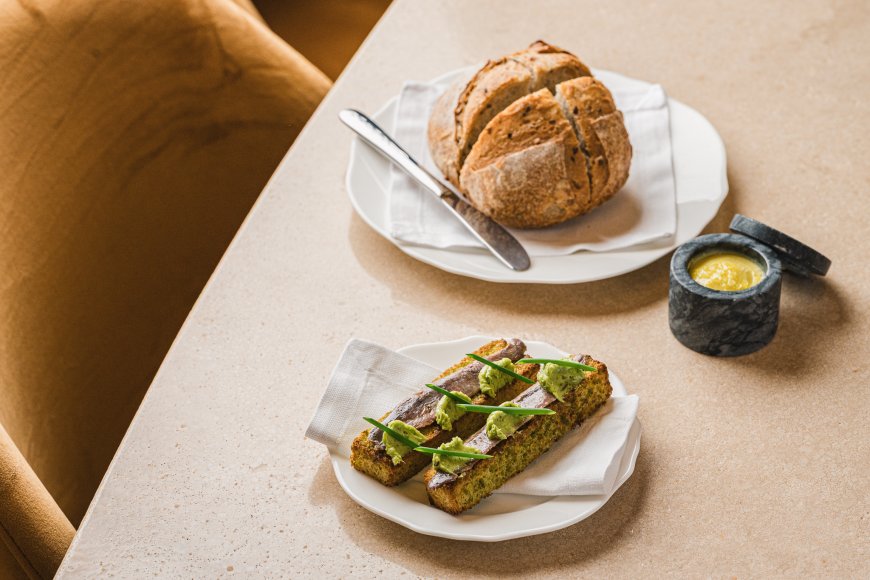 La proposta culinaria riflette un equilibrio consapevole tra tradizione e contemporaneità, costruito su tecniche attuali e attenzione alle consistenze. La panificazione – pane integrale ai semi, grissini e l’originale “burrolio” – anticipa un percorso che si apre con una selezione di ostriche.