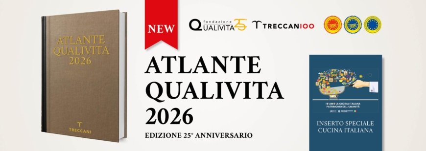 In occasione della proclamazione da parte dell’Unesco della Cucina Italiana come Patrimonio culturale immateriale dell’umanità, l’Istituto della Enciclopedia Italiana Treccani e la Fondazione Qualivita presentano l’Atlante Qualivita 2026 – edizione 25° anniversario edito da Treccani, la più esaustiva e aggiornata raccolta dell’offerta italiana di prodotti a Indicazione Geografica, che riunisce e documenta l’intero patrimonio delle produzioni agroalimentari e vitivinicole DOP, IGP, STG e delle bevande spiritose IG.
