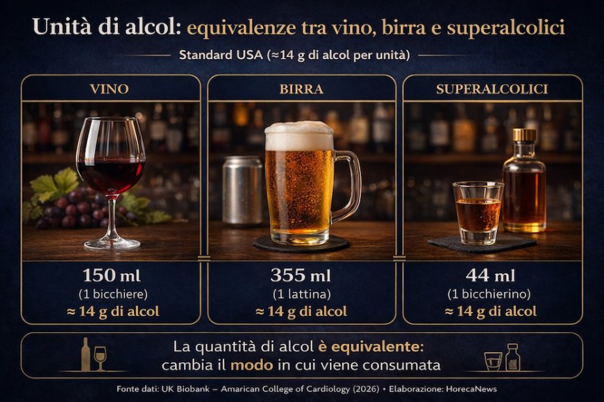 Il consumo di alcol sarebbe stato rilevato attraverso questionari alimentari e standardizzato in grammi di alcol puro: circa 14 grammi per una birra da 355 ml, un bicchiere di vino da 150 ml o un bicchierino di superalcolico. Su questa base, i partecipanti sarebbero stati suddivisi in diverse categorie di consumo, da occasionale a elevato.
