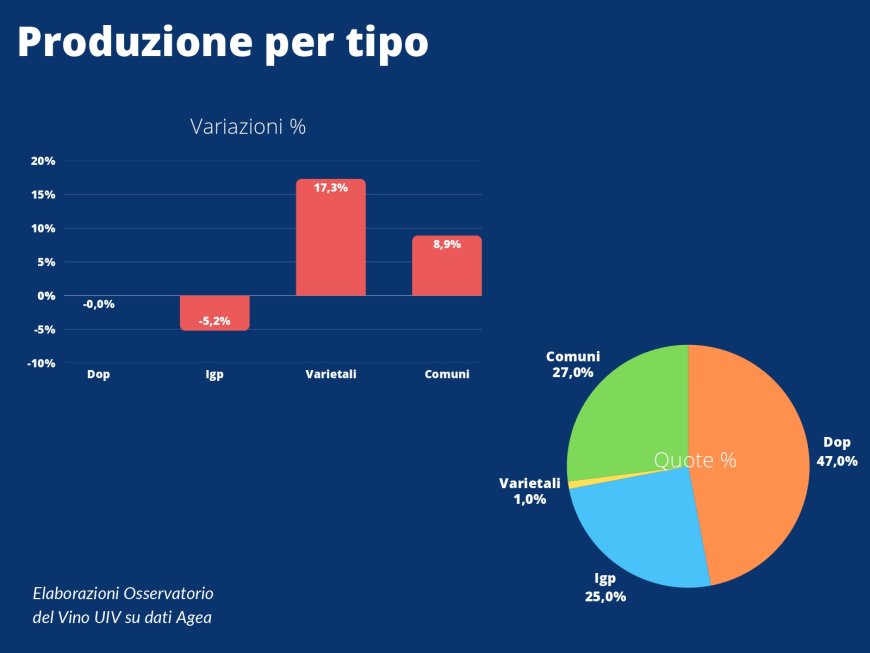 Gli stock in cantina indicano una forte eccedenza (+11,3%) per i vini comuni/varietali e per gli Igt bianchi (+10,5%). Più contenuto il trend delle giacenze legate ai vini Dop, a +3,6% (31,7 milioni di ettolitri).
