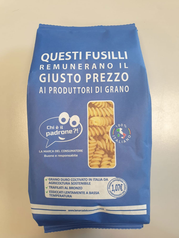A partire dal 25 giugno, e progressivamente su tutto il territorio nazionale, gli scaffali di Carrefour Italia si sono tinti del colore blu della Pasta dei Consumatori. Prima insegna della GDO ad abbracciare e sostenere il progetto di Chi è il padrone?!, l’azienda renderà disponibile il prodotto negli ipermercati, supermercati e negozi di prossimità, sia diretti sia in franchising, su tutto il territorio nazionale.
