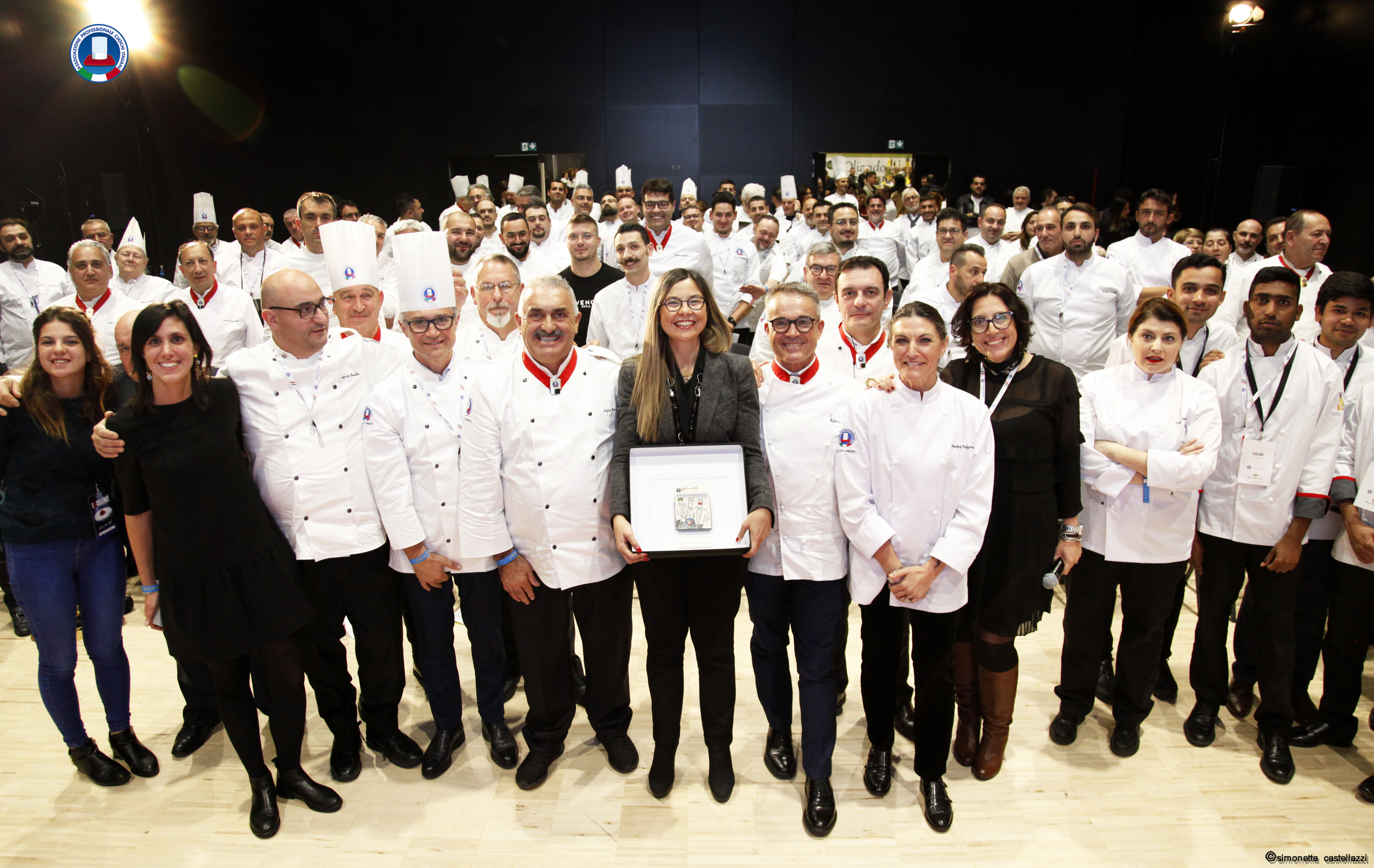 È stato poi il momento, sempre emozionante, della consegna della prestigiosa onorificenza Les Toques Blanches d’Honneur, premio alla carriera conferito da una commissione che ha valutato il percorso professionale di ognuno dei premiati che consiste in un gioiello d’autore: il Cappello, simbolo principe della professione, serigrafato con il logo APCI e con inciso il nome e il cognome del cuoco, proprio a sottolineare il riconoscimento alla persona.