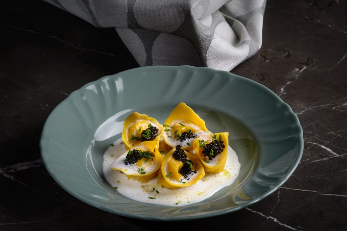 FOOO_ravioli anguilla affumicata in brodo di baccalà e caviale