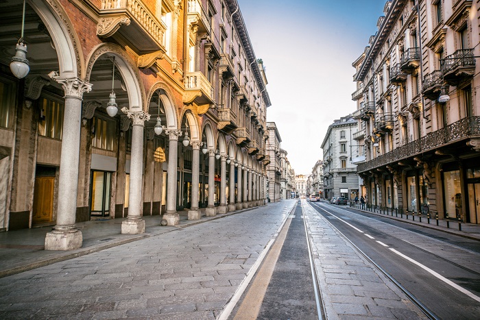 Wide Angle View of Main Street in Turin, Italy[/caption]